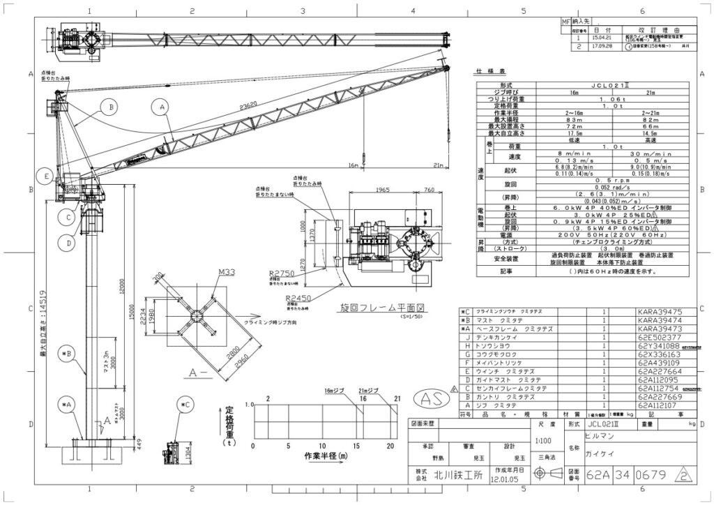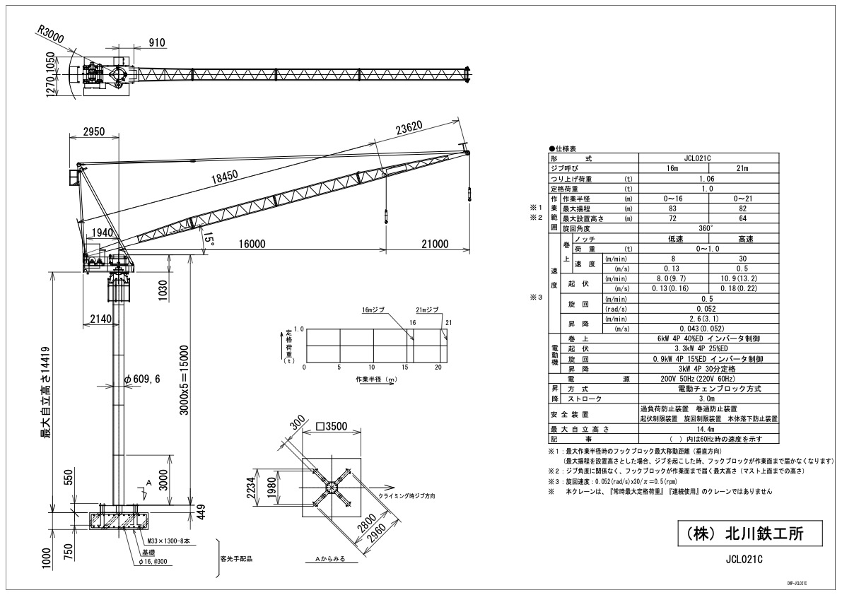 | 安全装置 | 過負荷、過巻、起伏、旋回、クライミング各制御リミット |