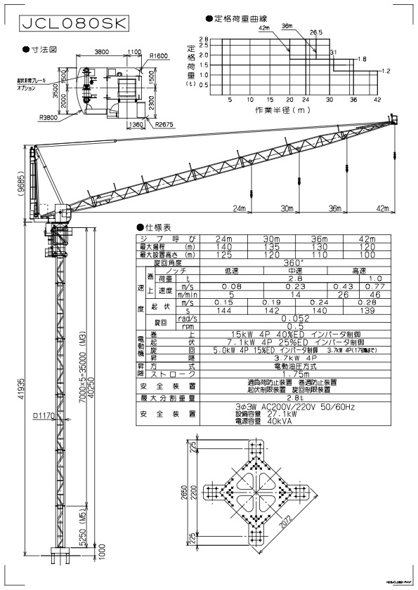 速度(m/min)荷重2.8t/低速:5.0 中速:14.0 高速:26.0