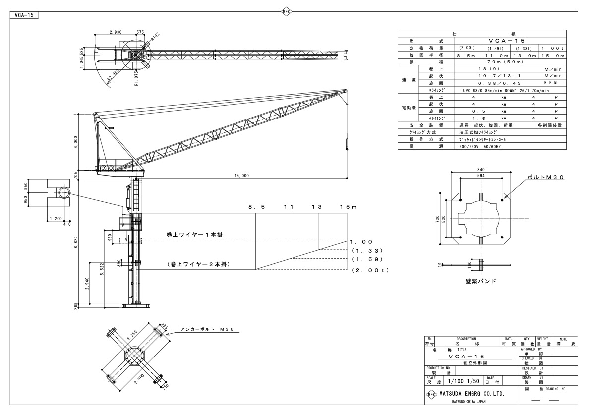 | 安全装置 | 起伏・巻上・旋回・荷重 / 各制限装置付 |