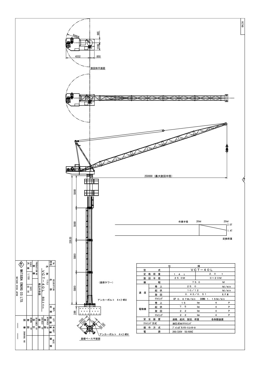 定格荷重t(27.8Mジブ)2.0t / 1.66t / 1.4t